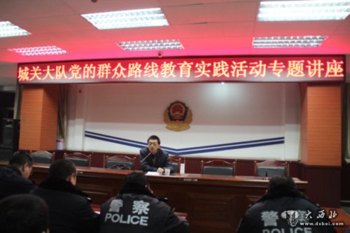 大西北网讯 为认真贯彻落实党的群众路线教育实践活动精神,按照支队工作要求,近日,城关大队邀请市委党校欧阳波教授为大队全体党员民警进行党的群众路线教育实践活动专题讲座,讲座由教导员王永刚主持,大队领导班子、全体民警认真听取了讲座。讲座中,欧教授以其渊博的常识,深厚的理论功底,精彩的讲解技巧,紧扣贯彻落实党的十八大、十八届三中全会和习近平总书记系列重要讲话精神,紧扣党的群众路线教育实践活动,紧扣党章,紧扣具体工作实践,多角度、广领域深入讲解,博古论今、引经据典、深入浅出,为全体党员干部献上了一堂精彩的理论大餐。在讲座结束后最后,支部书记王永刚在会上要求各中队紧密结合本职工作组织开展党的群众路线教育实践活动,进一步突出作风建设,对照查找“四风”问题,开门纳谏,广泛听取群众意见,帮助群众排忧解难。