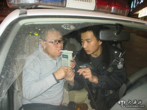 据当时执勤民警介绍,6日1时30分许,他们在皋麦十字路口检查时,一辆甘AN5883号雪佛兰牌小客车在麦积山路由西向东驶来。随即,交警对着车前晃动手中的手电,警示驾驶员减速靠边。当交警走到车窗旁,示意驾驶员放下车窗接受检查时,车窗防下的一刹那,一股酒气冲了出来。