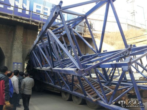当日清早,当记者赶到事发现场时,货主崔师傅已经找来了起重车开始清理现场,可是由于货被卡的太紧,在吊一重仅为600公斤的塔吊钢架时竟连起重车的车头也给撬了起来。“这个货并不重,主要是卡在桥洞壁上空间太小,起吊有些难度。”起重车司机如是说。在现场的几位工人师傅一边商议起吊办法,一边对记者说,该桥洞下方上圆,而货物一般都是不规则形状,在这种情况下,极易造成大型车辆被卡。在桥洞顶端的圆弧形的两壁上,水泥墙上被大型货车上的货物划出的线清晰可见。