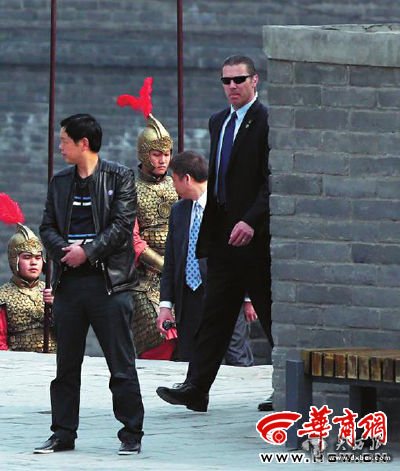 大西北网3月26日讯 据华商报报道:3月24日,美国“第一夫人”米歇尔访问西安,很多市民目睹美国总统夫人的风采时,很难不去注意她旁边那些面色冷峻、身着黑色西装、戴墨镜的保镖。