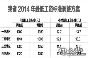 一类地区最低工资调至1350元/月