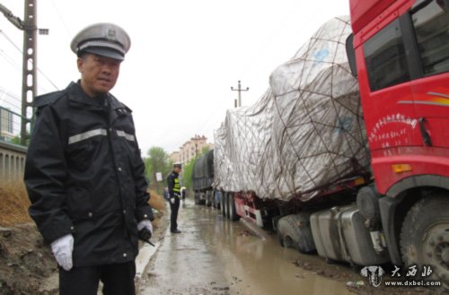 大西北网讯 连日来的降雨造成兰州市七里河区多处路段发生塌陷现象。秀川穴崖子路段,由于路面年久失修加之通过此路段的货车较多,又受连日强降雨影响,造成多辆大型车辆被陷,交通瘫痪长达二小时,七里河交警大队迅速启动应急预案解救受困车辆。
