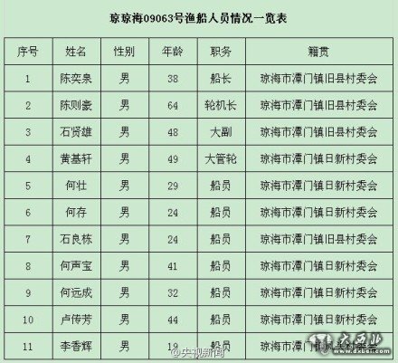 船员名单公布