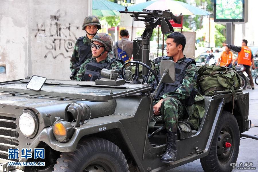原标题:泰国全国“军管”机枪架上街头(图)