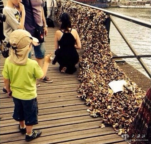 由于挂锁的人太多,而桥上空间有限,为了能把自己的锁放上去,很多人开始变得异常疯狂,他们往往要冒着危险爬到更高的地方,或者探身到水面上才能完成“任务”。这座桥上风景极佳,除了情侣外,很多艺术家也来此写生。除巴黎外,很多西欧国家都有类似的“爱情铁锁桥”。(高轶军)