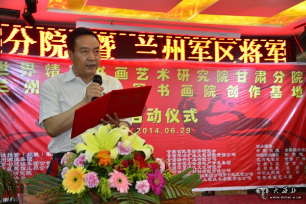 世界精英书画艺术研究院甘肃分院暨兰州军区将军书画院创作基地挂牌仪式。 贾笑云 摄