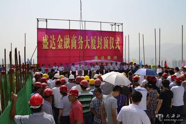 2014年7月30日上午,在锣鼓喧天、雄狮飞舞的礼炮声中,由中国民营500强企业、甘肃省民营百强企业盛达集团投资兴建的盛达金融商务大厦主体结构封顶仪式在农民巷盛大举行。