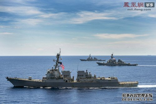 7月7日,美军3艘宙斯盾驱逐舰南海航行,声称维护地区安全。(凤凰军事)