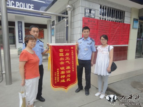 8月5日上午,周先生家人手捧“一身正气 廉洁为民 雷霆出击 破案神速”的锦旗和感谢信来到七里河大队,感谢大队领导、事故民警在办理一起交通肇事逃逸案件中的艰辛付出。