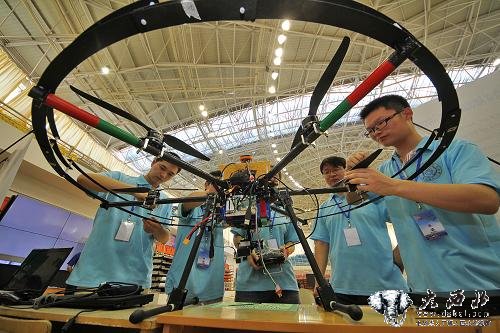 大西北网8月8日讯 8月4日,选手在赛前调试空中机器人。