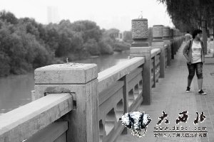 随后,记者沿着中山桥桥北前往音乐喷泉广场走访看见,沿途均有护栏被人为破坏的情况。护栏破裂,乱写乱画很常见。在由观光道通往河滩位置的台阶护栏边,共有5根柱子上,除了高处的2根柱子未遭破坏外,低处的护栏上的3根路灯杆被连根拔出后,不知去向。在音乐喷泉的台阶护栏柱子上,最高处花纹浮雕也不翼而飞。