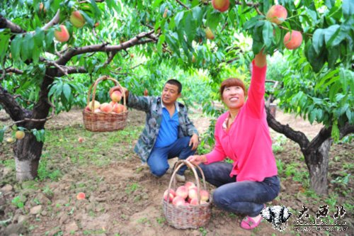 8月11日,七里河区八里镇农民在采摘桃子。目前,八里镇千亩桃园全部进入收获期,前来收购的商贩络绎不绝。