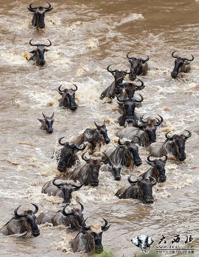 每年八、九月是东非大草原上演动物大迁徙的季节,其中最为著名的就是百万角马横渡马拉河、前往对岸水草肥美的地方觅食的壮观场面。