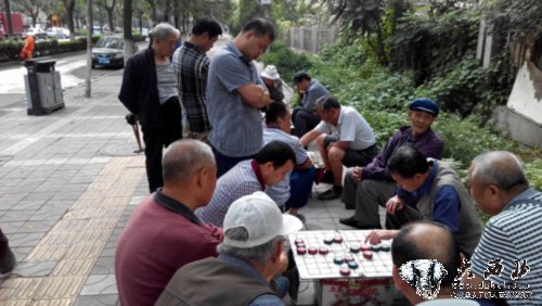 昨天下午2时许,位于天水路十字附近的人行道上,刘大爷像往常一样拿出2副象棋和几个马扎,在一个小桌子上摆放好象棋棋盘和棋子然后等待棋迷们上摊。刚摆好后不到5分钟,旁边一桌上已迫不及待地开始切磋棋艺了。家住雁滩的郭大爷告诉记者,每到周末,他吃过早饭后,会照例骑着自行车来到老年公园里下象棋,常常是二人对弈,几个人乃至十几人围观,最多的一次,旁观者达15人之多。郭大爷说,他们下棋、看棋、评棋,不争个高低,不图个输赢,只为着休闲,为着打发时光,为着显示一下自己的技艺,也为了学艺,为了结交棋友。