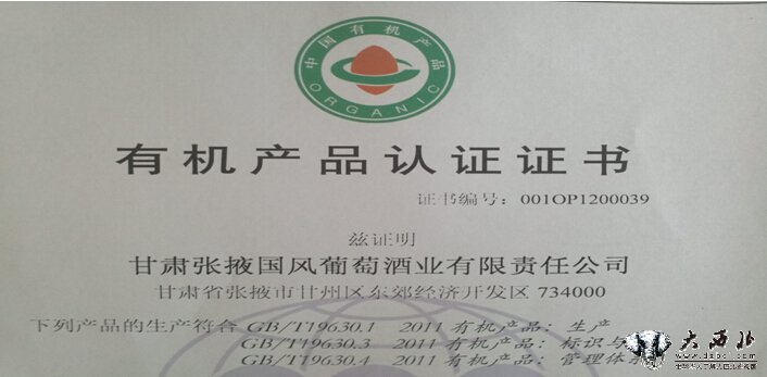 【热烈祝贺国风干红葡萄酒被国家质量认证中心认定为有机葡萄酒】