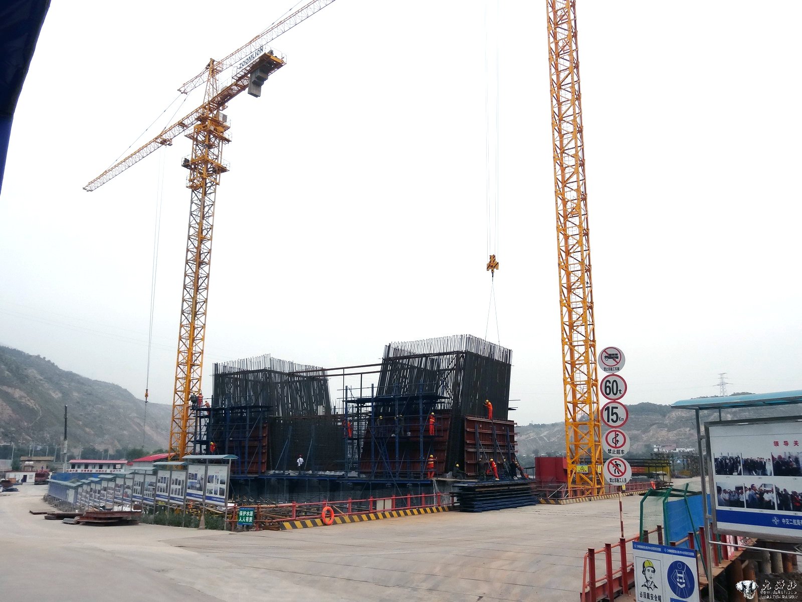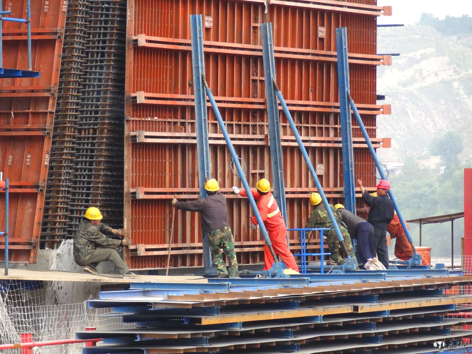 9月3日,兰州南绕城高速西固黄河大桥工地,工人们正在架设桥墩模板,该桥已进入桥墩浇筑阶段。