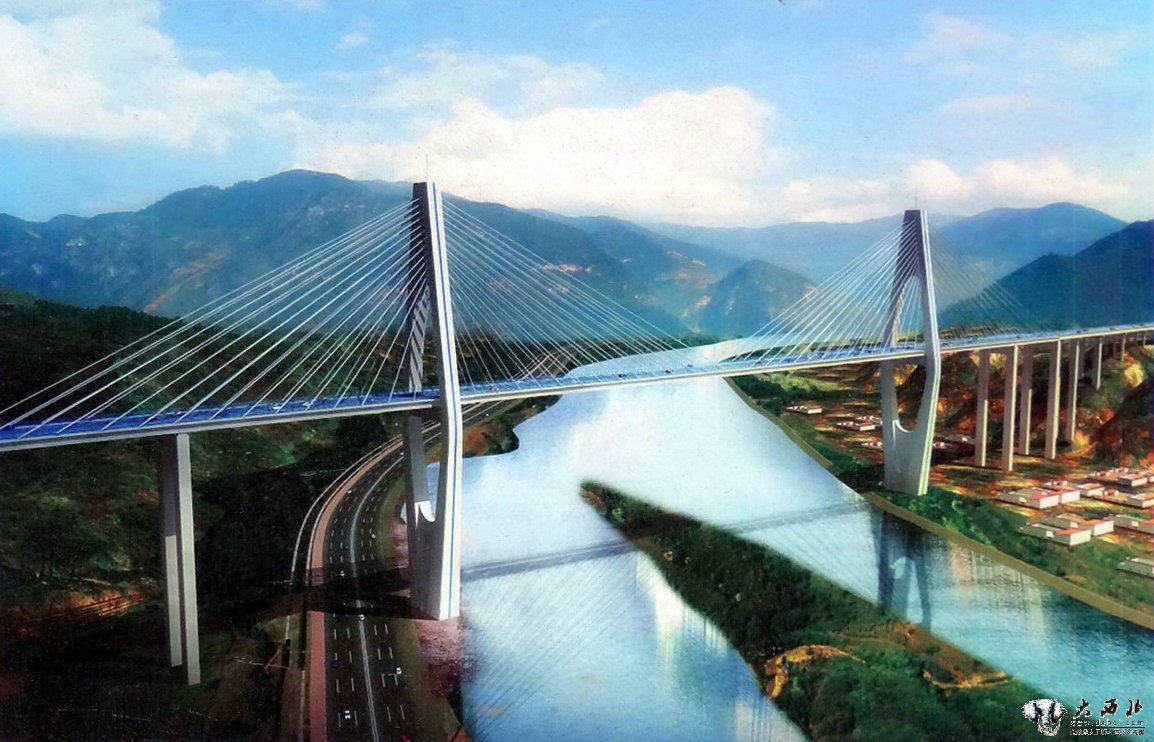 西固大桥斜跨黄河,在黄河南岸西固区岸门村西约500m,北岸位于西固区柴家台村西,距离柴加峡水电站下游约1.8公里;大桥设计全长:1003m,主桥桥面宽:27.5m,引桥桥宽:24.5m。大桥跨径布置为2 40m预应力混泥土简支箱梁,(南岸引桥)+(177+360+177)m双塔三跨半漂浮体系结合斜拉桥,主桥为双塔双索面钢混结合梁斜拉桥。桥面距地面150多米,是兰州黄河最高的斜拉桥。