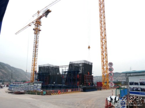 9月8日,兰州南绕城高速西固黄河大桥工地,工人们正在架设桥墩模板,该桥已进入桥墩浇筑阶段。