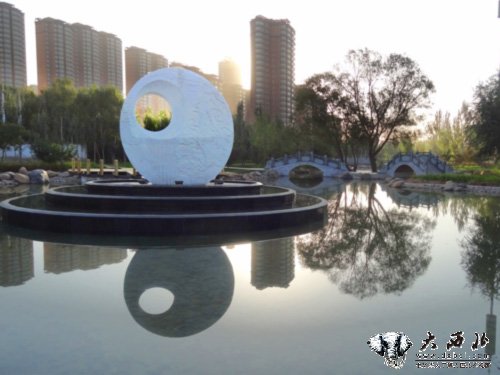 一池弯弯的湖水,映出一轮圆圆的月亮,嫦娥带着玉兔,后羿弯弓射日。美景、雕塑、寓言故事。《月光似玉》近日在北滨河路农沙落成。汉白玉雕琢的圆月,正面是嫦娥奔月的浮雕,背面雕琢后羿射日,一池湖水,还有两座小桥,颇具诗情画意。黄河风情线又增添了一处新景观。