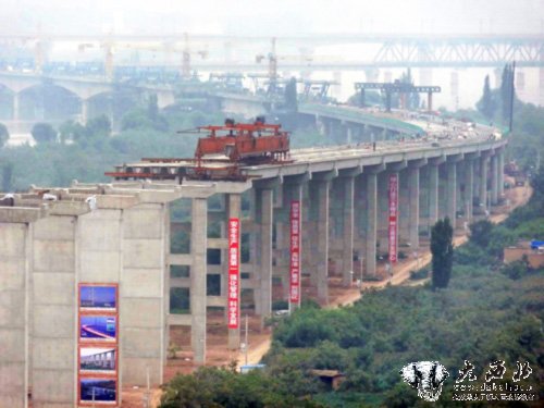 9月11 日,兰州至永靖沿黄河观光快速通道达川高架桥桥面吊装施工,蜿蜒48公里的快速通道施工如火如荼。
