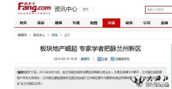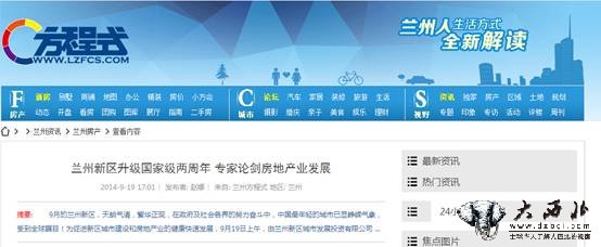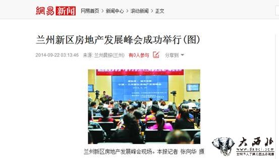 和讯网发布了题为《兰州新区房地产发展峰会成功举行》的消息;新浪乐居发布了题为《聚焦兰州新区房地产发展峰会新区策马扬鞭正当时》的消息;每日甘肃网发布了题为《兰州新区地产板块异军突起》的消息;网易新闻(滚动新闻)发布了题为《兰州新区房地产发展峰会成功举行》的消息;兰州搜狐焦点微信发布了题为《新丝路上的钻石兰州新区房地产发展峰会热议新区潜力》消息,网站发布了题为《兰州召开房地产发展峰会共议异军突起的新区地产》的消息;甘房网发布了题为《兰州新区晋升为国家级新区两周年暨兰州新区房地产发展峰会召开》的消息;搜房兰州发布了题为《板块地产崛起专家学者把脉兰州新区》的消息;甘肃日报《房地产观察》发布了题为《兰州新区房地产发展峰会召开》的消息;兰州方程式发布了题为《兰州新区升级国家级两周年专家论剑房地产业发展》的消息,《甘肃经济日报》发布了题为《2014中国·兰州新区房地产发展峰会召开——中国最年轻的城市已崛起》的消息;《兰州晨报》发布了题为《兰州新区地产板块异军突起兰州新区房地产发展峰会成功举行》的消息。