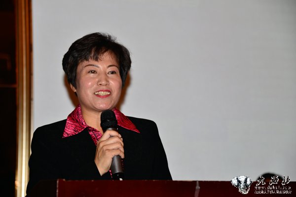 甘肃旭东书画研究院敦煌分院院长王淑萍在兰州新闻发布会讲话。 贾笑云 摄