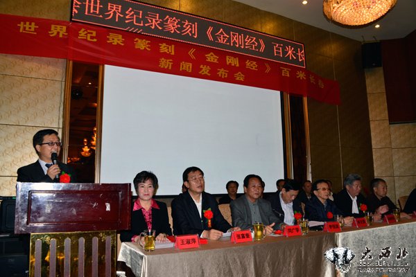 世界记录篆刻《金刚经》百米长卷兰州新闻发布会。 贾笑云 摄