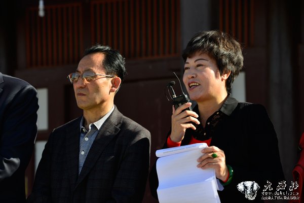 王淑萍在百米篆刻《金刚经》捐赠仪式上讲话。 贾笑云 摄