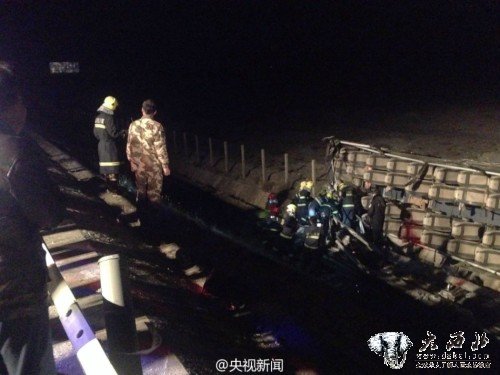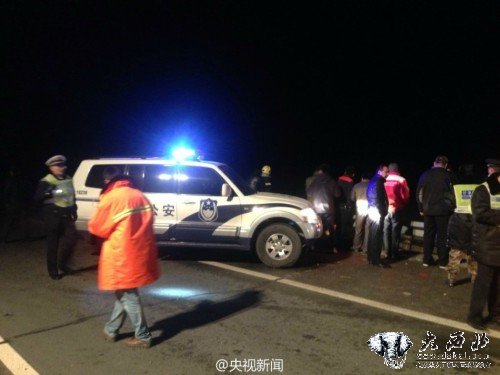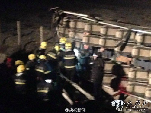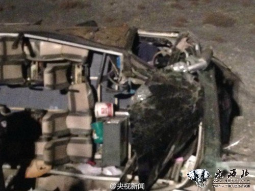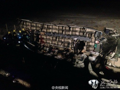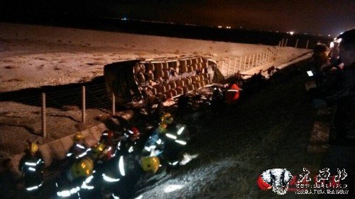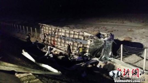 11月26日晚,一辆从乌鲁木齐开往兰州的大客车途经连霍高速甘肃嘉峪关至酒泉段一冰雪路面处发生事故,驶出路面侧翻到路肩下。事故已造成2人死亡48人受伤。警方初步调查,大客车核载51人,实载50人,均为成年人。图为事故现场。