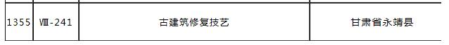 甘肃永靖县“古建筑修复技艺”,被列入第四批国家级非物质文化遗产代表性项目名录的“传统技艺”中。