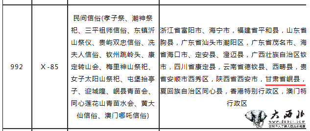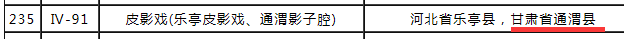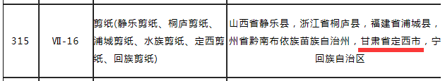 甘肃省张家川回族自治县花儿(张家川花儿)被列入扩展项目名录“传统音乐”类;甘肃省通渭县皮影戏(通渭影子腔)被列入扩展项目名录“传统戏剧”类;甘肃省定西市定西剪纸被列入扩展项目名录中的“传统美术”类;甘肃省永靖县的“生铁冶铸技术”被列入扩展项目名录中的“传统技艺类”;甘肃省天水市秦州区的“天水织造技艺”被列入扩展项目名录“传统技艺”类;甘肃省岷县的“岷县青苗会”被列入扩展项目名录“民俗类”。 (责任编辑:鑫报)
