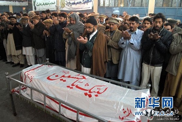 12月16日,在巴基斯坦北部城市白沙瓦,人们参加一名遇难学生的葬礼。