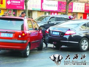 12月21日下午4时10分许,记者来到白银路与市政大坡交界的丁字路口看到,一辆车牌号为陕EAL519的橙黄色轿车与一辆车牌号为甘AQA878的黑色轿车发生追尾事故。记者发现在距离追尾事故现场不到2米的地方,两辆轿车同样发生追尾事故。据橙黄色轿车车主介绍,就在几分钟之前在中山林什字就有两辆轿车发生追尾事故。事故致使白银路自西向东方向一条车道被占用,造成一定程度的交通拥堵。“今天兰州最低气温已到了零下11度了,希望相关部门停止洒水,还市民一个安全的出行环境。”车主李先生告诉记者。