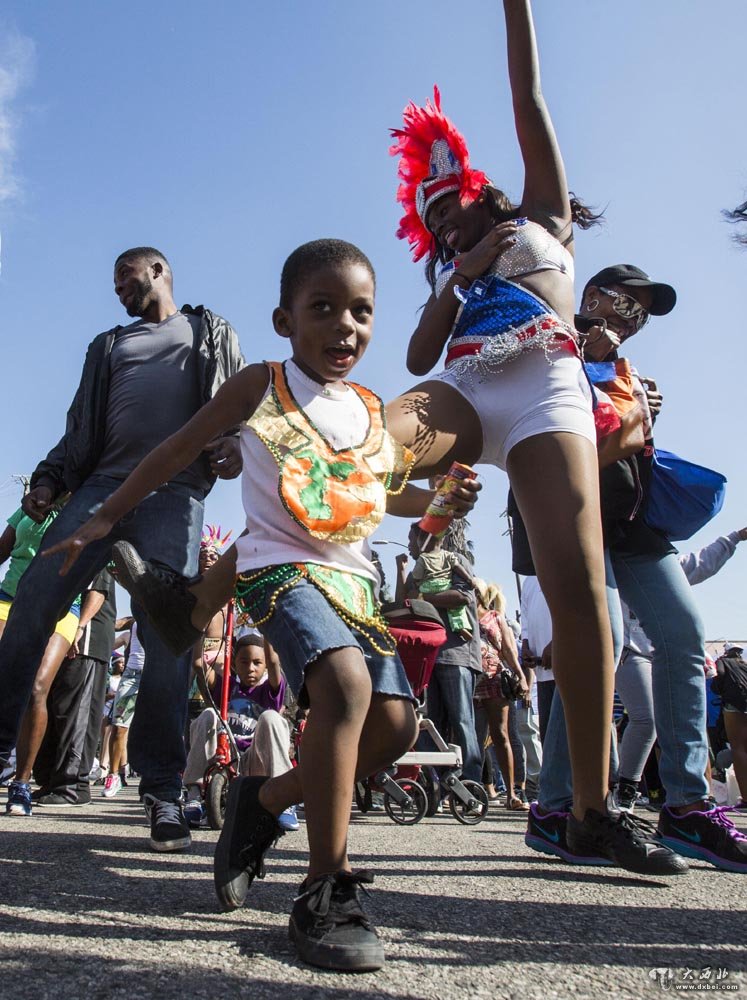 1月19日,在美国洛杉矶,人们在参加马丁·路德·金日纪念游行时跳舞。