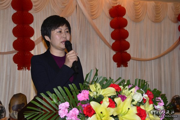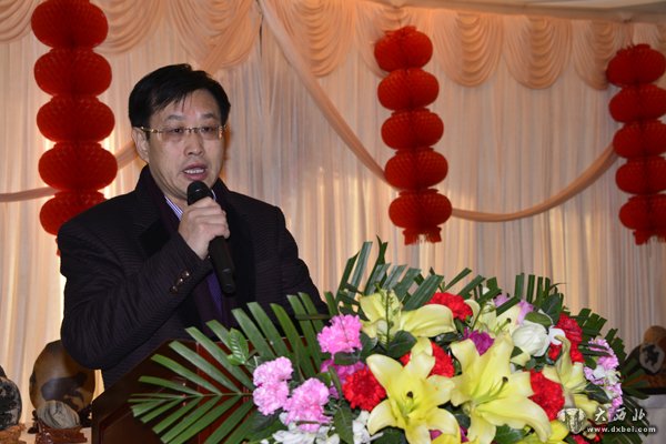 甘肃省观赏石协会会长胡云华在会上作协会工作报告。 贾笑云 摄