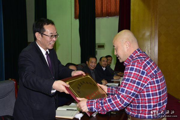 甘肃省酒类商品管理局局长陈蒲给新当选的副会长单位颁发证牌。 贾笑云 摄