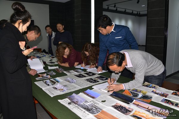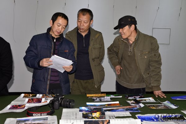 甘肃省摄影家协会专职副主席路学军等评委在仔细挑选佳作。 贾笑云 摄