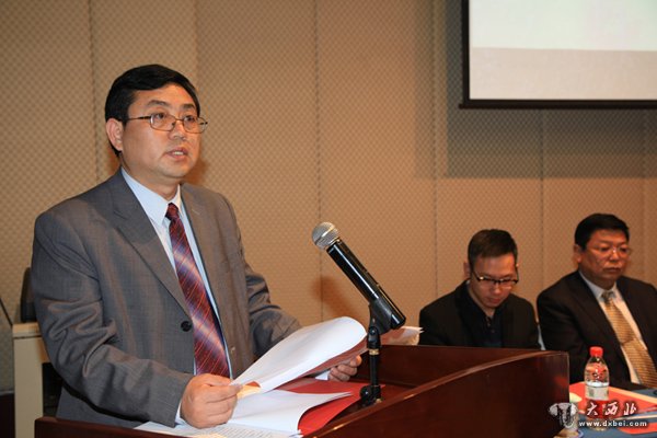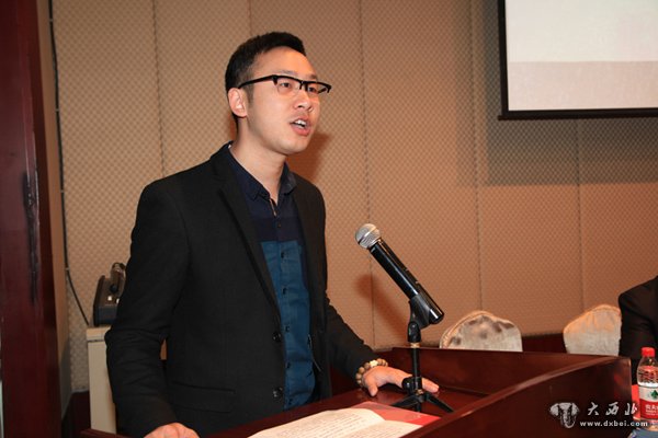 福建阳光集团兰州分公司销售经理邱斌在推介会上讲话。 贾笑云 摄