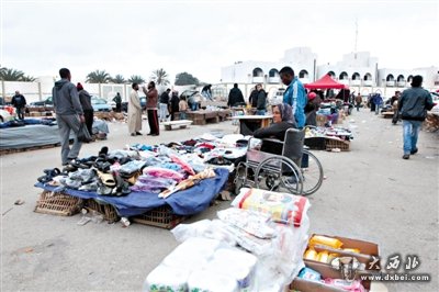 大西北网4月7日讯 4月1日,利比亚班加西,利比亚前总统卡扎菲昔日的宫殿变成了一个市场,小贩在这里出售杂货。