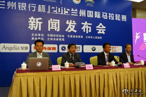 2015兰州国际马拉松赛新闻发布会。 贾笑云 摄
