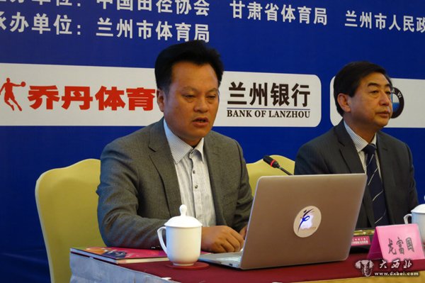 2015年兰州国际马拉松赛将于4月13日启动报名,6月13日上午7:30鸣枪开赛。兰州市副市长戈银生在新闻发布会上致词。