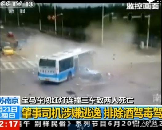 南京秦淮区石杨路友谊河路口发生一起交通事故。一“宝马”轿车由西向东闯红灯通过路口,撞上由南向西左转行驶的“马自达”牌轿车,并撞上一辆正常行驶的公交车和一辆出租车。事故造成“马自达”轿车上司机及乘客死亡,被撞出租车驾驶人受伤。肇事驾驶人事发后离开现场,后被警方找回并控制,目前事故详情正在进一步调查中。 (责任编辑:张云文)