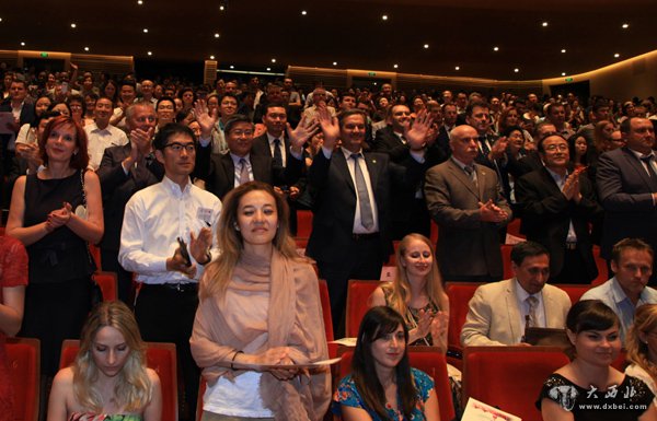 加里宁、李荣灿等领导和嘉宾观看中国经典舞剧 《丝路花雨》。 贾笑云 摄