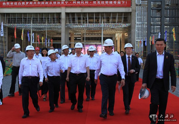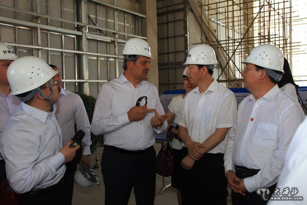 加里宁率白俄罗斯政府代表团参观在建的甘肃科技馆。 贾笑云 摄