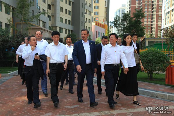 加里宁率白俄罗斯政府代表团参观兰州市安宁区新厦水岸天成住宅区。 贾笑云 摄