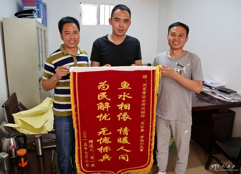 大西北网7月7日讯,“鱼水相依、情暖人间;为民解忧、无愧标兵”。7月7日,一副大红的锦旗送到刘家堡派出所民警李临川手中。