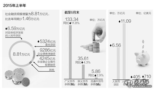 关于社会融资规模增量情况,盛松成表示,总体看,社会融资规模增量合理增长,直接融资占比明显上升。初步统计,2015年上半年社会融资规模增量为8.81万亿元,和最近6年来同期的平均水平基本相当,比去年同期少1.46万亿元,但也在逐步上升,具体来看有四个特点: