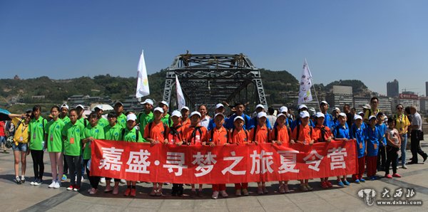 嘉盛.寻梦之旅夏令营在兰州中山桥合影。 贾笑云 摄