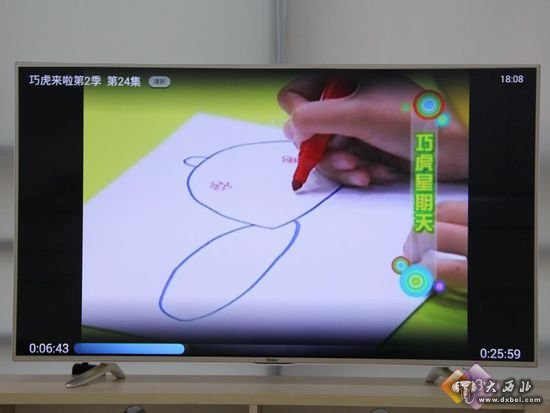 不知不觉,巧虎都第二季了...由于节目源尺寸比例问题,我们在使用海尔阿里Ⅱ代电视进行播放的时候是不能全屏显示的,同时画面清晰度表现良好,网速够给力的情况下可以调高。