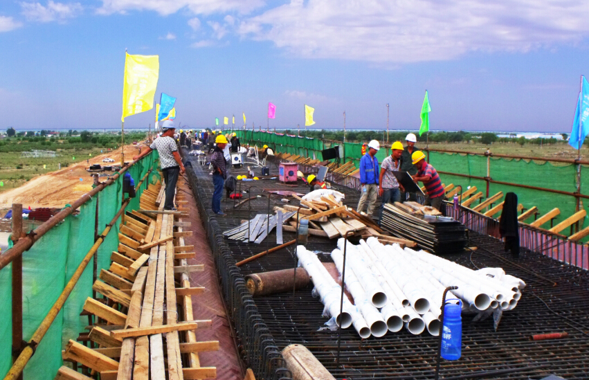 大西北网7月29日讯,为保证陶鄂铁路8月20日顺利铺轨,中铁二十一局五公司陶鄂项目部跨S215国道连续梁施工夜以继日,抢时间,赶速度,在7月20日完成全部钢筋绑扎并进行浇筑,比计划工期提前2天完成。